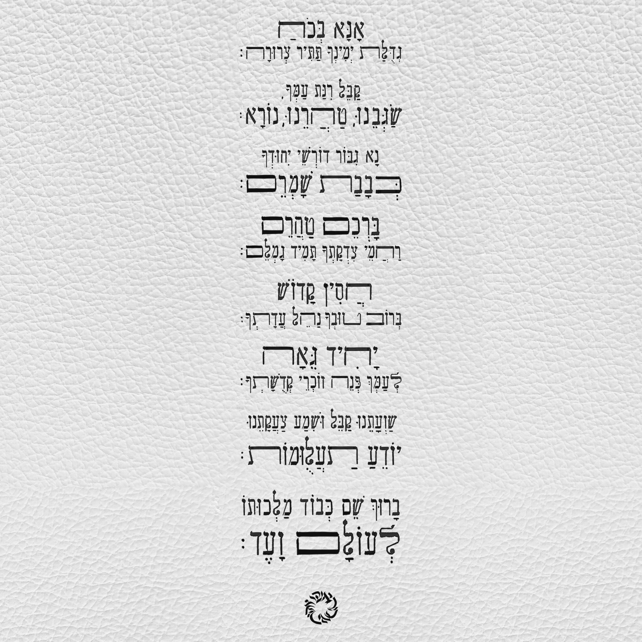 תפילת "אנא בכח" קליגרפיה בדיו על עור טבעי