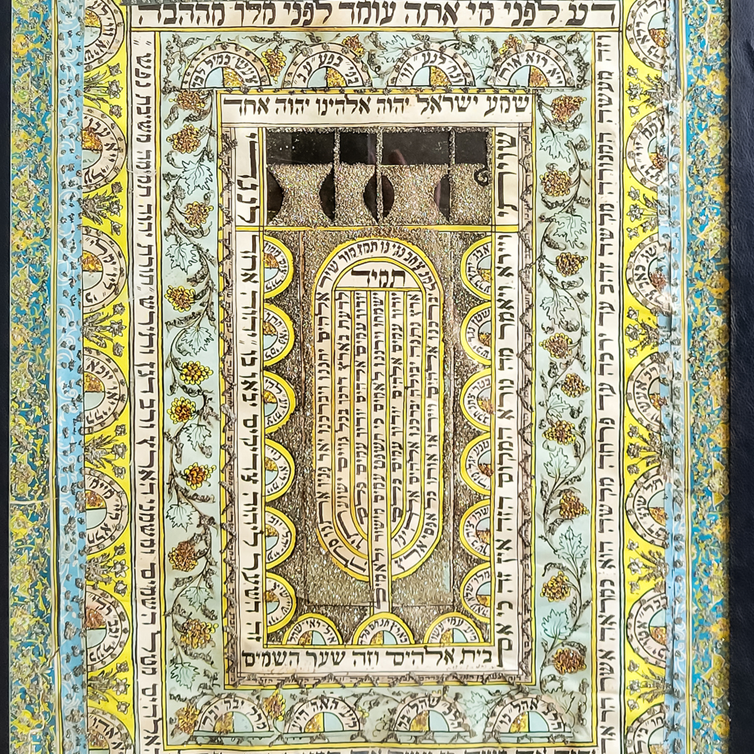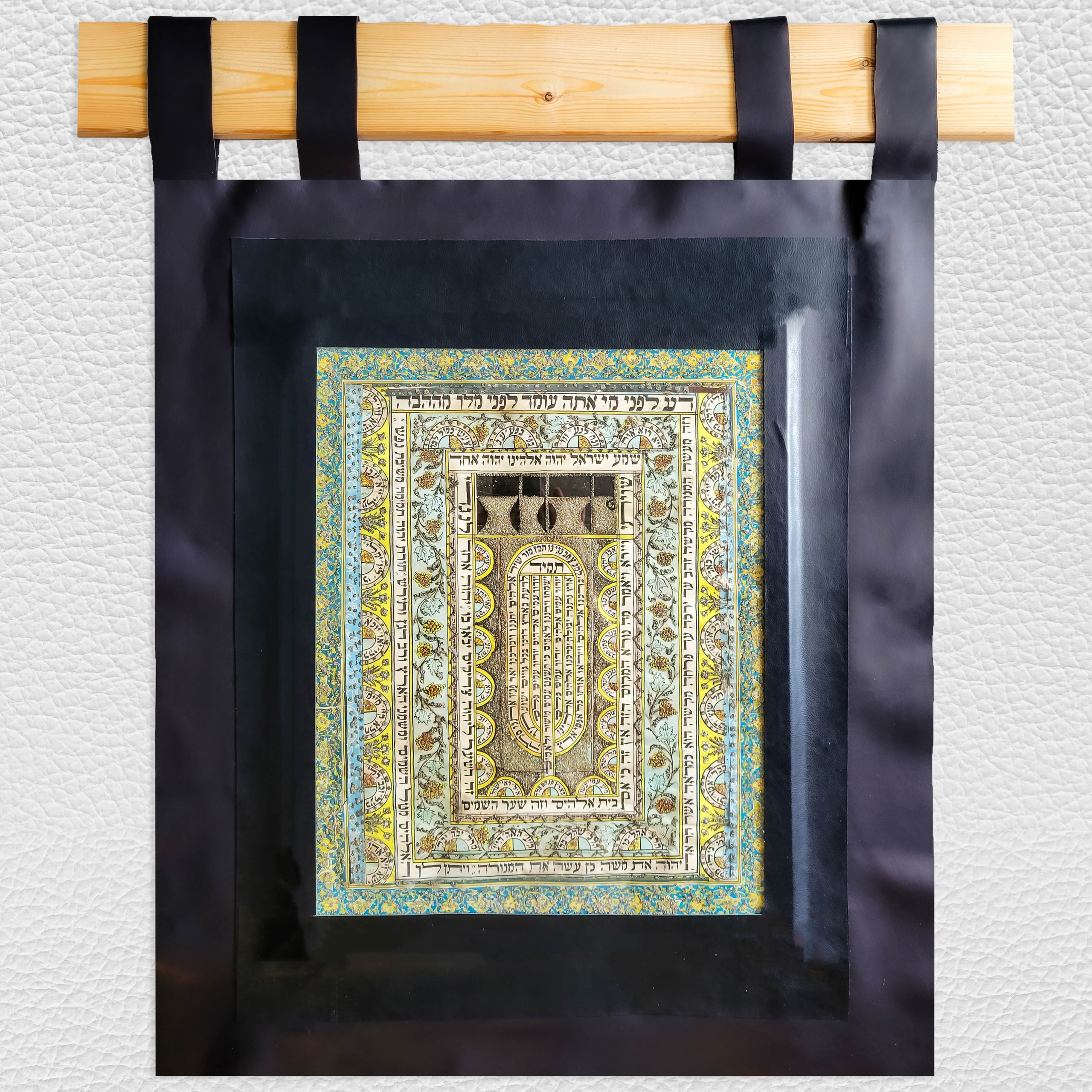 / לוח "שיוויתי" פרסי ישן בעיצוב מחודש ומסגור על גבי עור טבעי שחור.