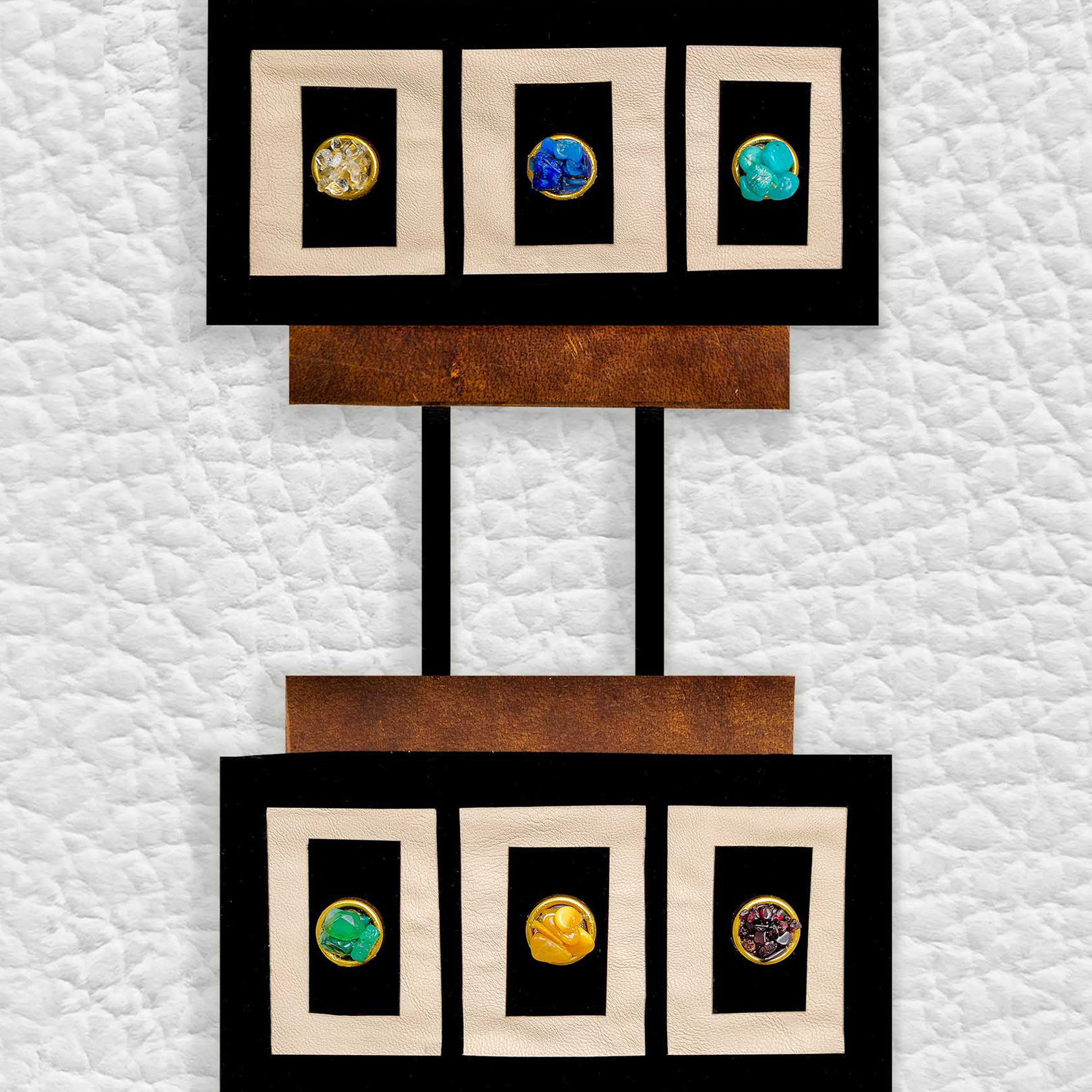 יריעות עור טבעי בשילוב קטיפה, חיבורי עור ושיבוץ אבני חושן