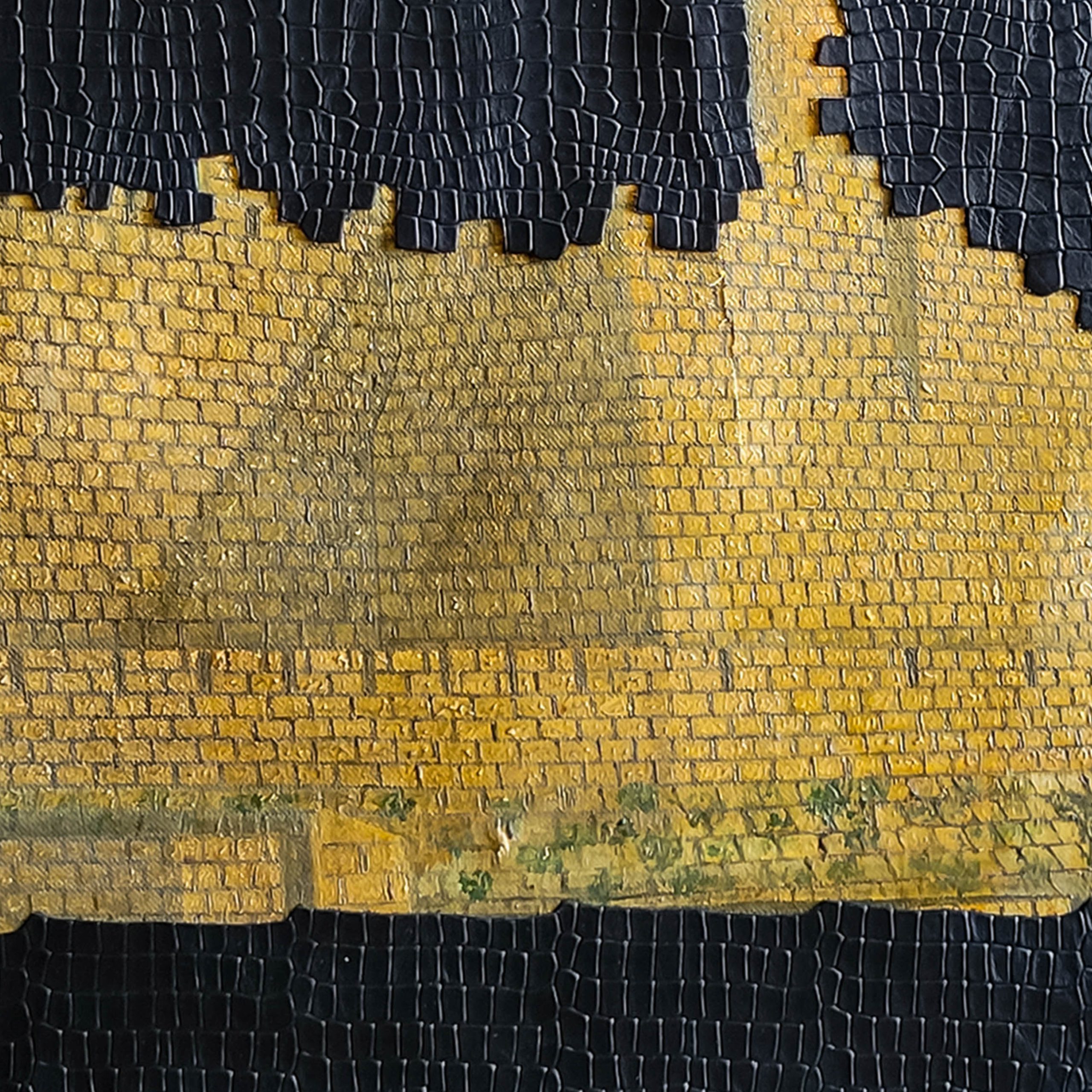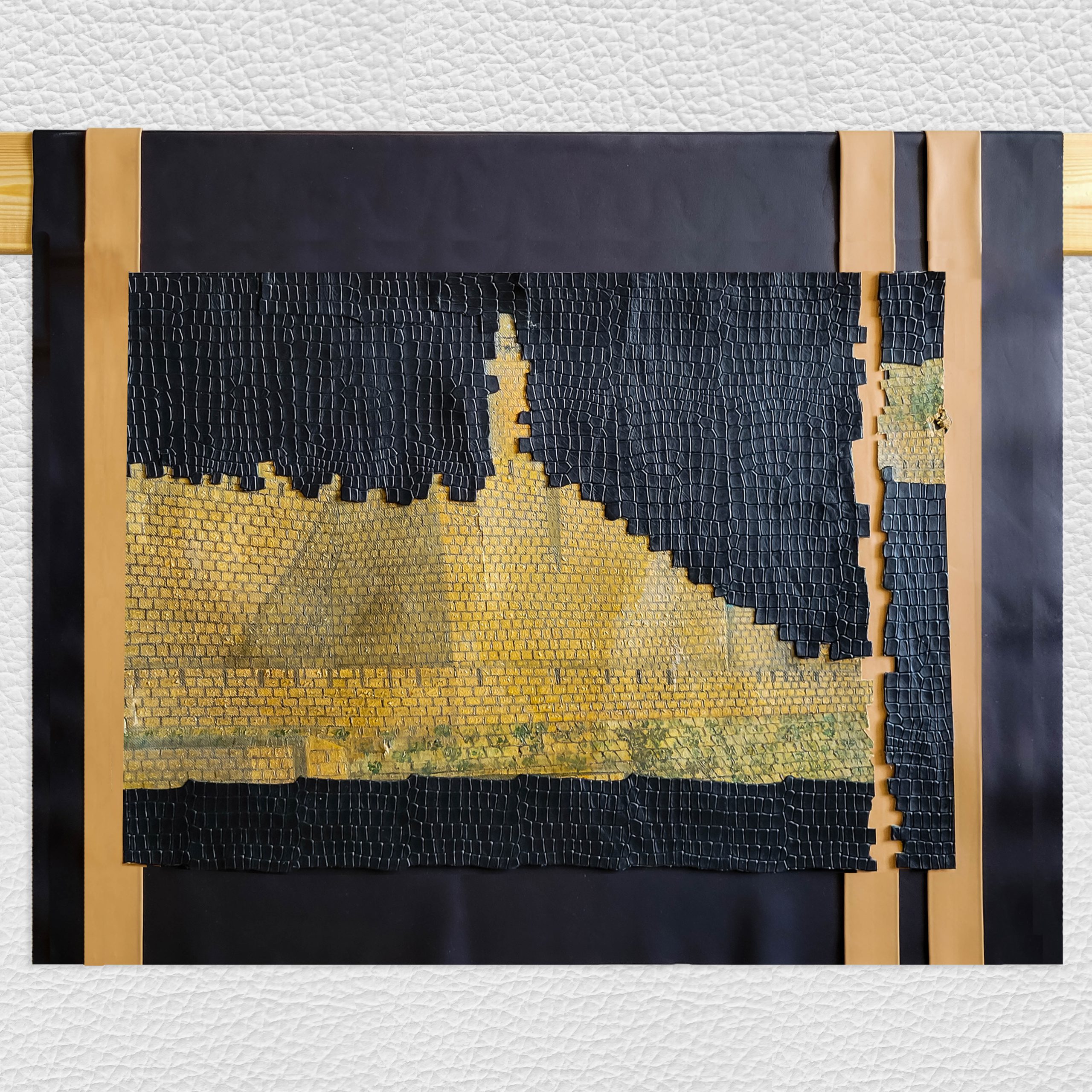 עיר דוד, ציור שמן עתיק שהיה ברובו פגום. עוצב מחדש ומוסגר על עורות טבעיים. מתלה עץ אורן.