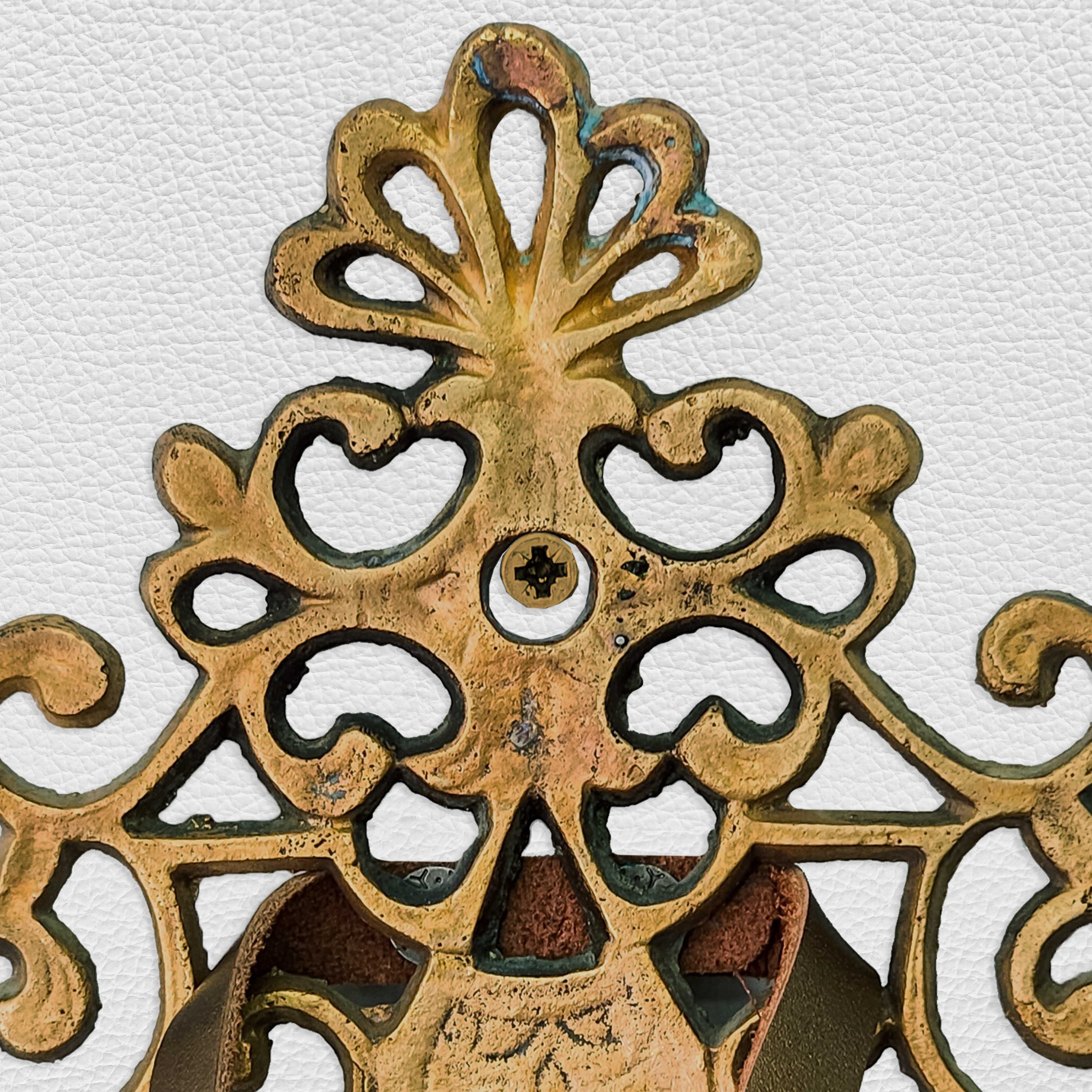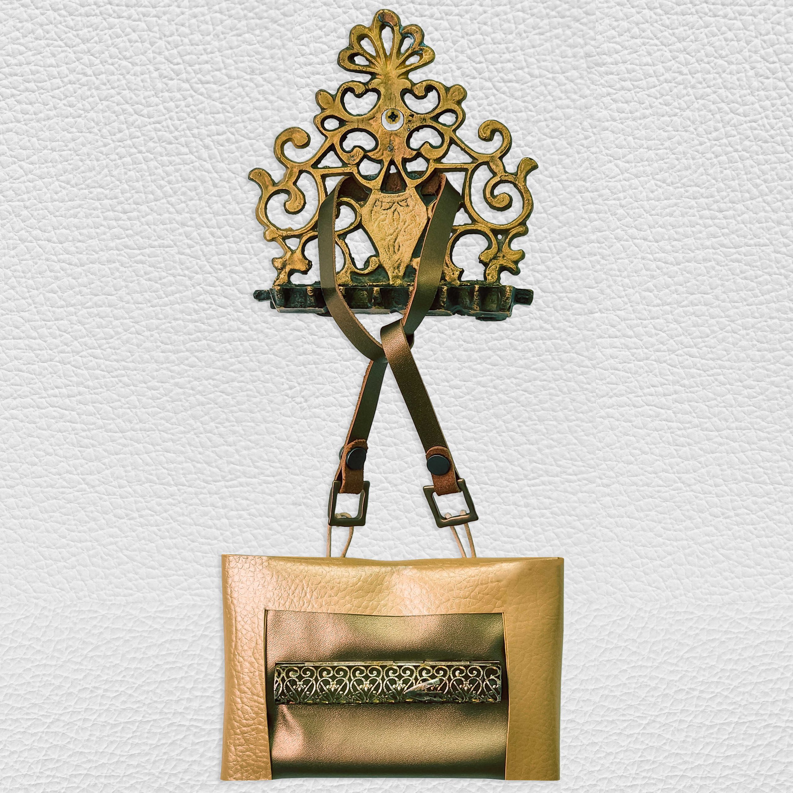 חנוכיית ברונזה משנות ה60 משולבת עם תיק לספר קטן עליו מזוזה עתיקה עבודת פילגרין ישראל